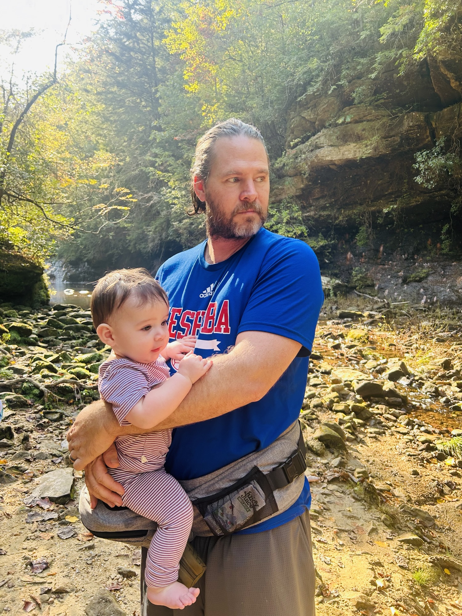Aside from the initial drama of the above situation, the trip was great. Cooper didn’t mind at all that there was no shower or running water for the toilet ;). The rest of us fared fine given that we were only staying two nights, and it wasn’t incredibly hot. While there we hiked to Kinlock shelter, Kinlock falls, Holmes Chapel falls, Turkey foot falls, and Mize Mill Falls. If you can’t tell my husband and I love waterfalls. For this hiking trip I wore Coop in my ergo baby carrier, or on my tush baby for the shorter hikes. It was fine because most of the trails I listed are short, though not all are “easy”. (In the future I plan to invest in a true hiking carrier, so if anyone has suggestions on their favorite that has low VOC emissions, I am all ears!) Anytime we take friends and family to Sipsey we love to take them to these spots because you can do many of them in a day and the sights are gorgeous.