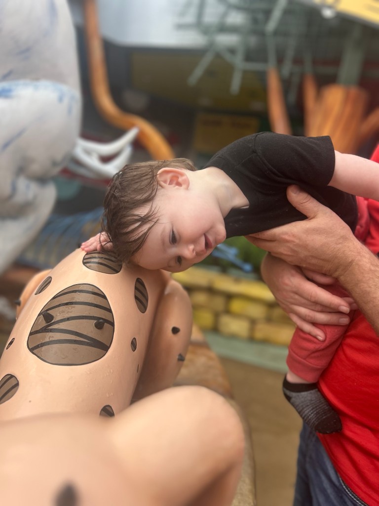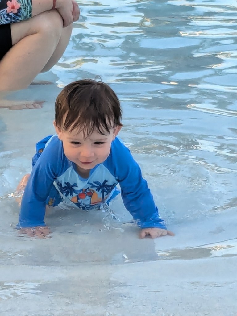 We revisited the Trolls Playground, and this time, I remembered extra clothes! He got to splash around in the Kung Fu Panda play area—total win. We had lunch at Dino Digs, explored the Discovery Center, and then he took a glorious two-hour stroller nap (cue angelic choir). Later, we hit the hotel pool, which, as expected, was a massive hit—because what toddler doesn’t love a pool?
