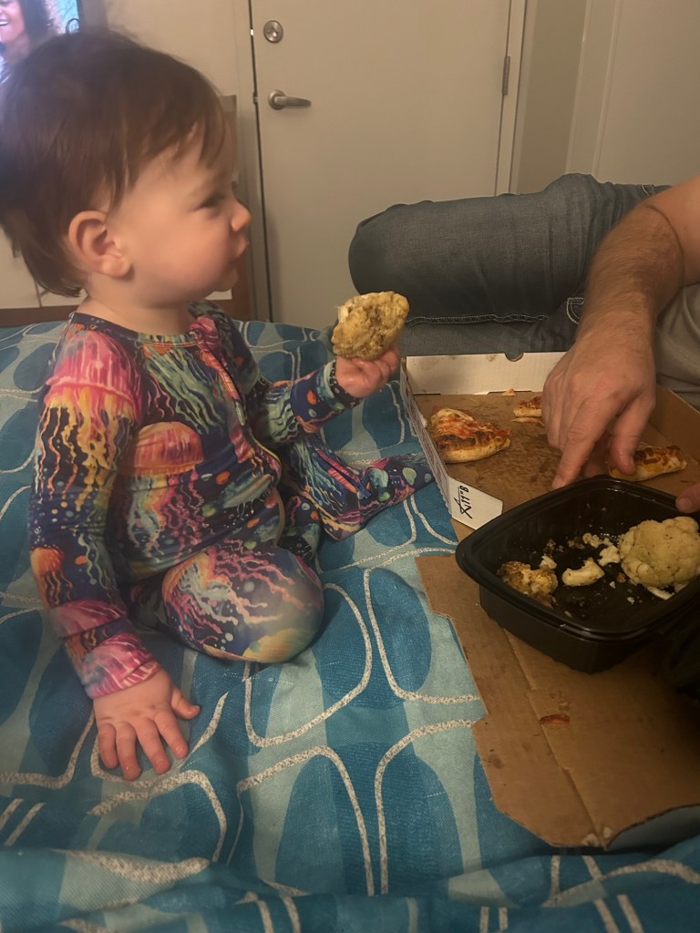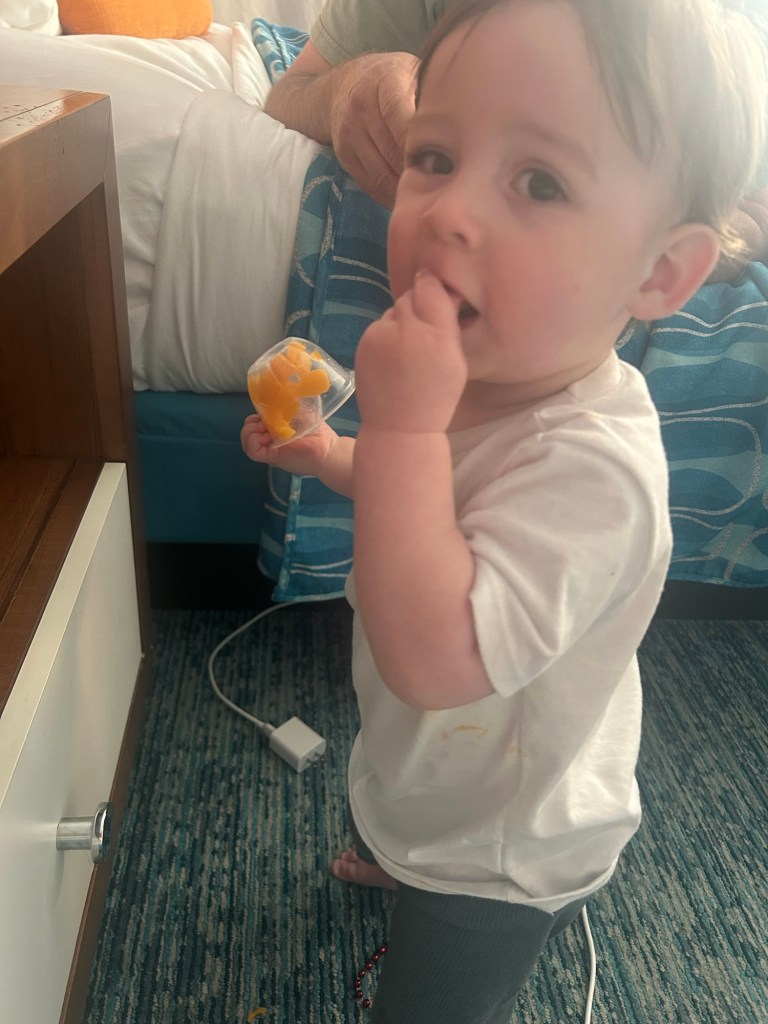 Upon arrival, Cabana Bay Resort was a breath of fresh air—mostly because our little guy could finally roam free. We had dinner in the room from the diner, gave him a bath, and let him crawl his heart out before he finally crashed at 9:30 PM (a full two hours past bedtime—RIP our schedule).