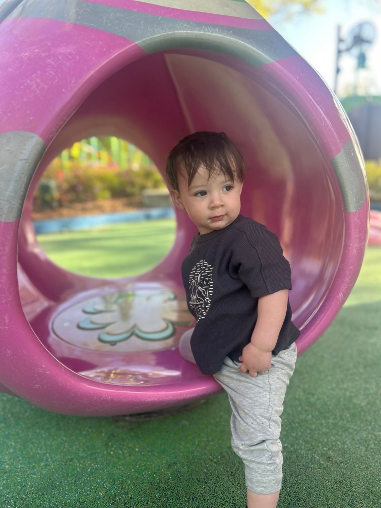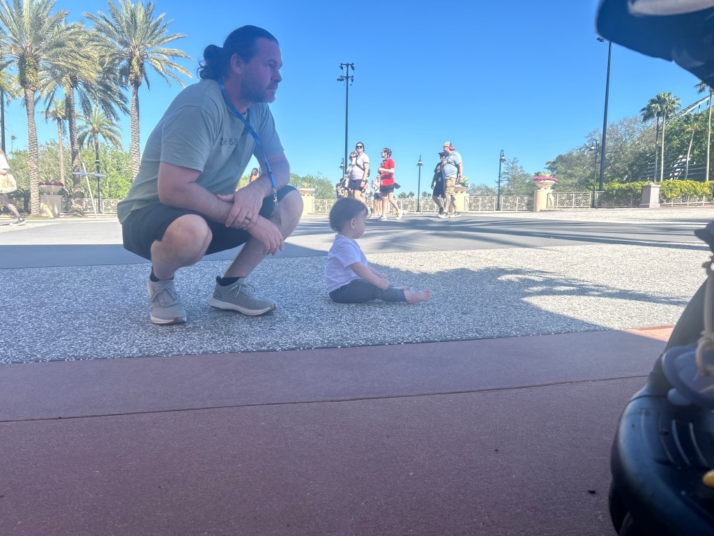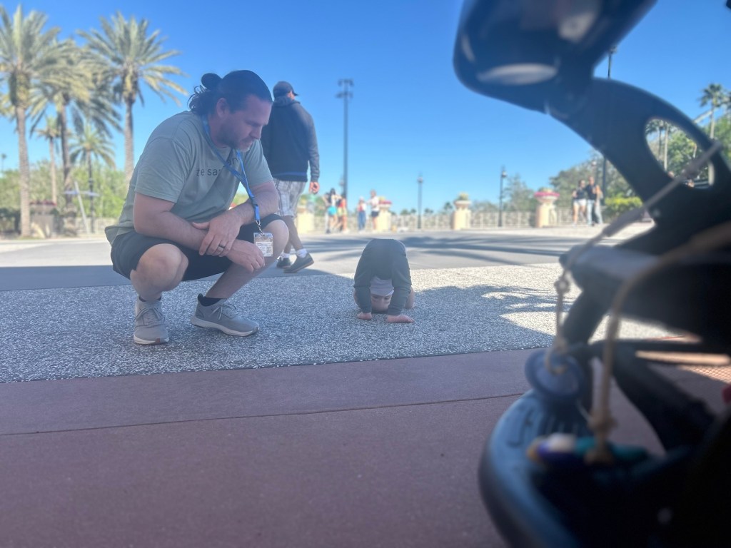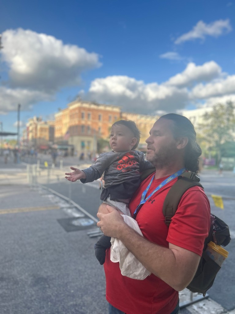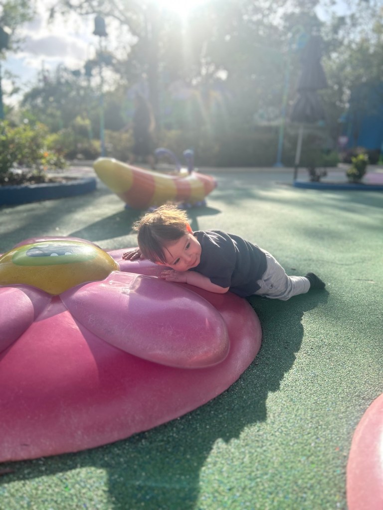 On day two, we slept in (smartest decision we made all trip). We strolled into the park late, and he fell in love with watching the Rip Ride Rockit coaster. A hidden gem of this day? The grassy knoll near the stage area, where he could crawl around while we chilled.